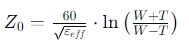 其中,W是線寬,T是導體厚度,